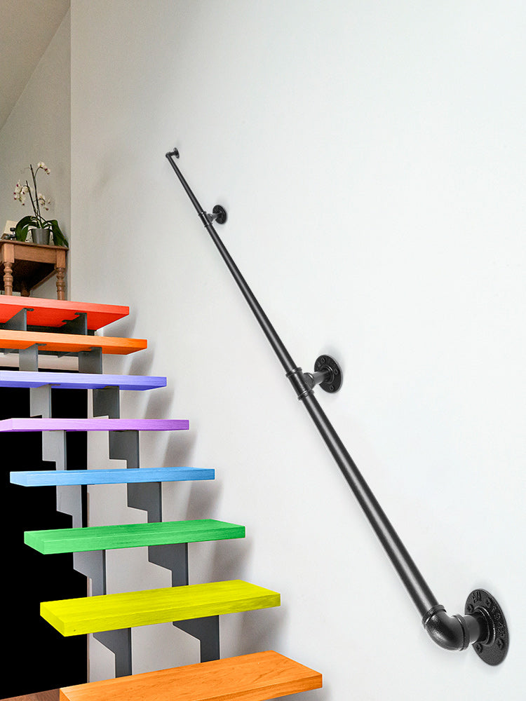 【 INDUSTRIAL-STYLE DESIGN 】- The staircase handrail is designed with a unique industrial style. It is made of strong-hardness carbon steel to keep away from deformation and scratch. Matte black finish (with 100μm outdoor-dedicated spray paints on the industrial pipe handrail surface) withstands the elements year after year and won't rust, corrosion in all seasons and climates.