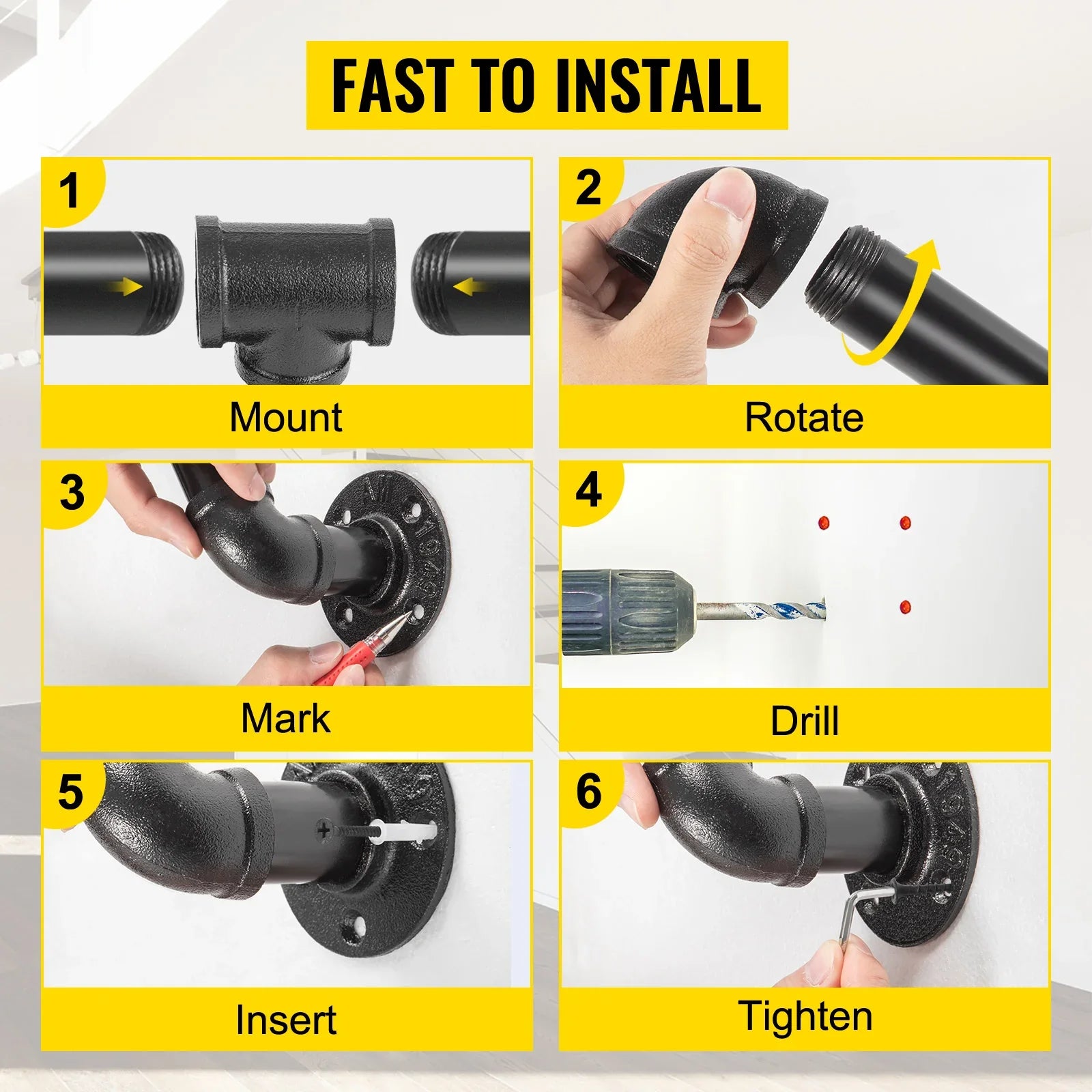 【 VERSATILE APPLICATION 】- The staircase railings can be applied to a horizontal, inclined, or vertical balustrade. The various installation methods can be used as handrails, clothes rack, and corner mounting on villas, lofts, bars, apartments, office buildings, and dormitories. Indoor and outdoor are both available.