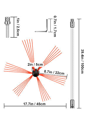 【SPINS FORWARD & REVERSE】- With a flexible Brush head (or an extra brush head), this chimney sweep is easy to rotate at high speed with a drill. It allows you to run your drill in both forward and reverse.
