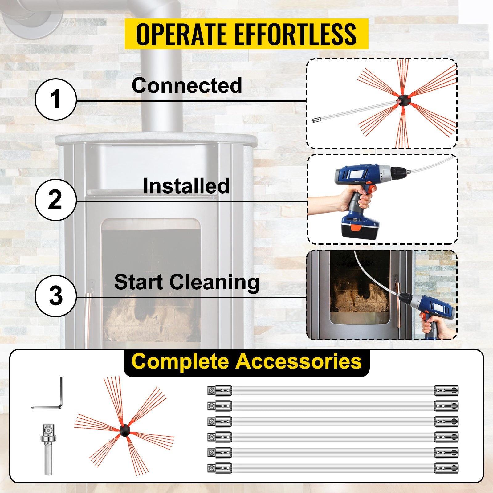 【EASY TO INSTALL】- The durable rods of this sooteater rotary chimney cleaning system can be linked together or disassembled to adapt pipe length. No screw-in, easy to connect, and detach.