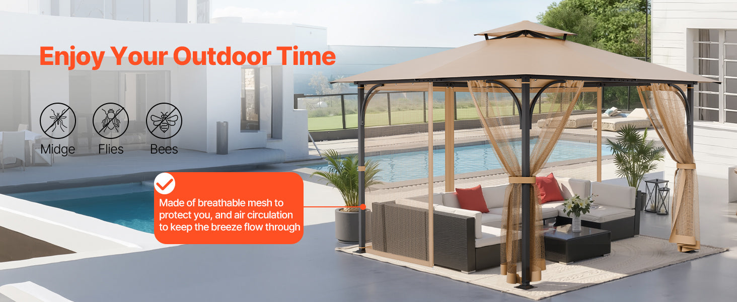 VEVOR Gazebo Netting Replacement Outdoor Garden Gazebo Ne 4-Panel Sidewall Mesh Gazebo Curtain with Double Zipper for Garden