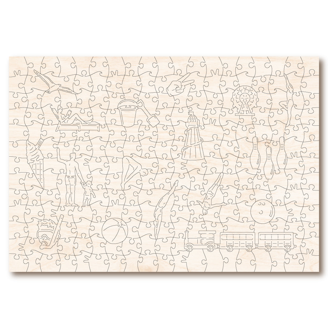 This delightful travel poster puzzle contains over 20 whimsy pieces, many of them multipart!
