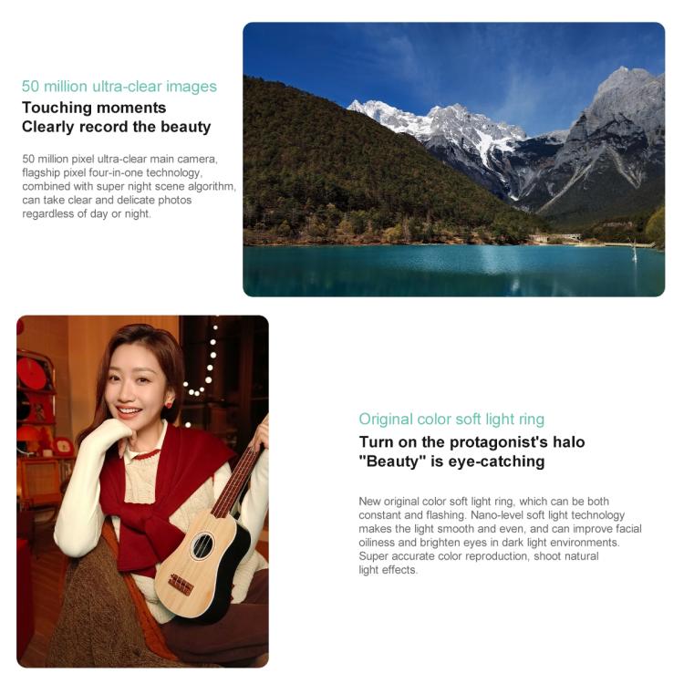4. Rear camera modes: Night scene, portrait, photo, video, 50MP, panorama, document correction, slow motion, time-lapse photography, professional, micro movie, dynamic photo