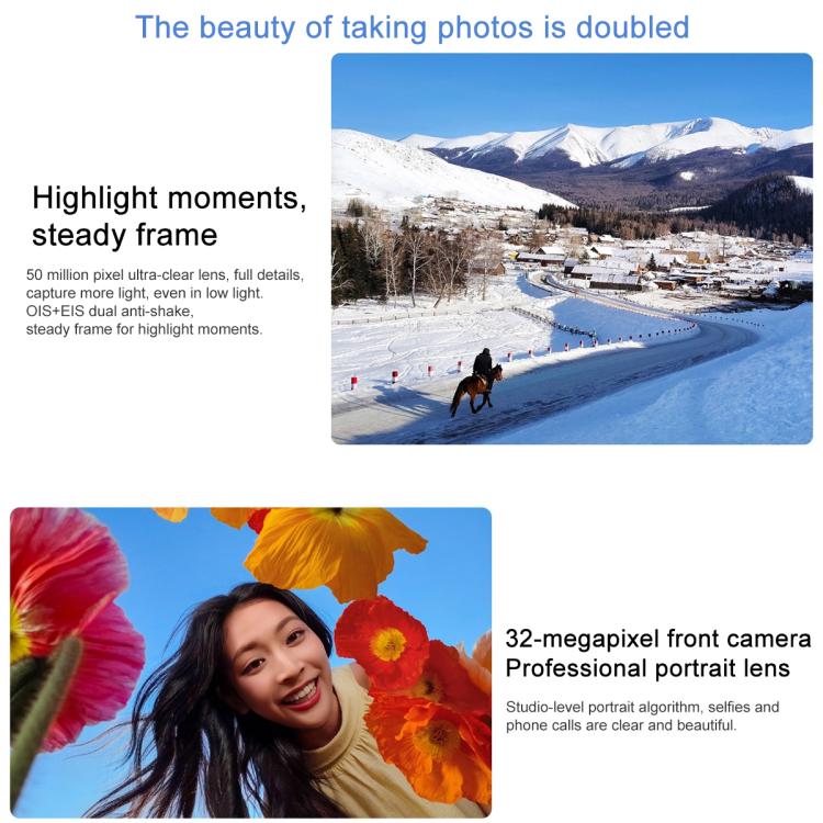1. Rear camera: 50MP main (f1.8) + 2MP blur (f2.4)
