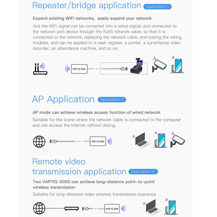 2. Support 802.11b/g/n Wireless transmission protocol, the transmission rate is 300Mbps.