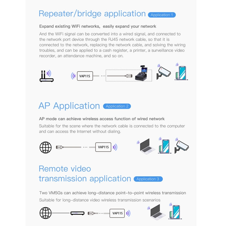 3. Support 802.11b/g/n WiFi transmission protocol.