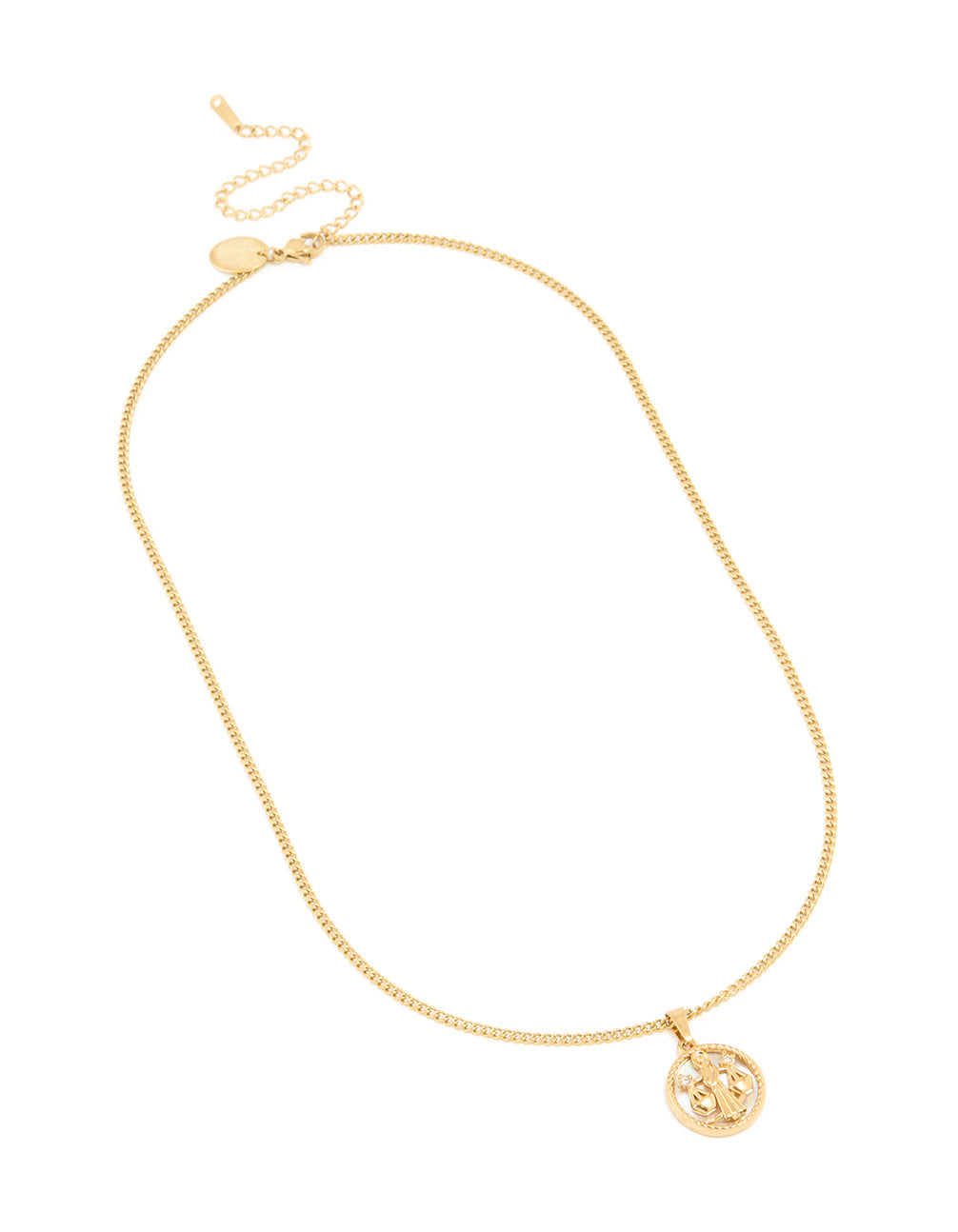Add a little sparkle to your everyday look with this Waterproof Gold Plated Stainless Steel Cubic Zirconia Libra Circle Necklace. This zodiac-inspired necklace features a sleek gold-plated stainless steel design, making it durable and stylish. The circular pendant is adorned with shimmering cubic zirconia crystals, forming the Libra zodiac symbol, perfect for astrology lovers especially people with the libra star sign! Whether you're dressing up for a party or keeping it casual, this necklace pairs beautifully with everything from flowy dresses to simple tees. Its waterproof design means you can wear it anywhere, rain or shine, making it as practical as it is chic. Treat yourself or gift it to the Libra in your life for a timeless, personal accessory!