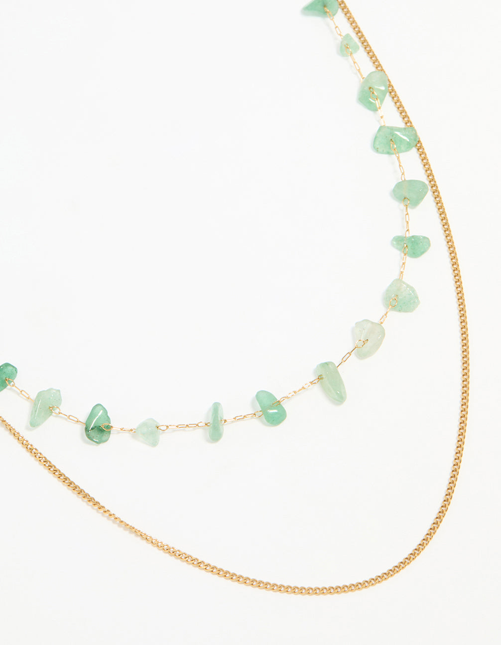Add a splash of sparkle to your look with this Waterproof Gold Plated Stainless Steel Green Stone Layered Necklace. This layered jewellery piece combines sleek gold plating with delicate green stone accents for effortless elegance. Perfect for day-to-night wear, it's ideal for casual brunches or evening parties. Pair it with a flowy dress or a simple top to let the shimmering crystals take centre stage. Crafted from durable stainless steel with fine gold plating, this necklace is as stylish as it is practical, designed to withstand daily adventures while keeping its shine. A must-have accessory for those who love versatile and timeless jewellery!