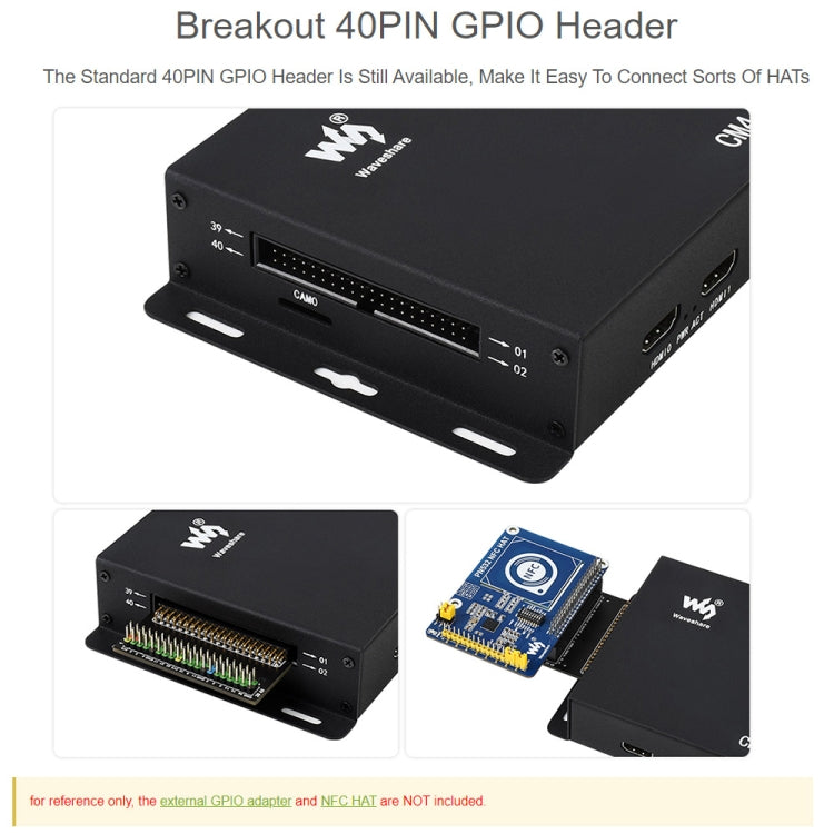 3. Break-out 40PIN GPIO Header: The standard 40 PIN GPIO header is still available, make it easy to connect sorts of HATs
