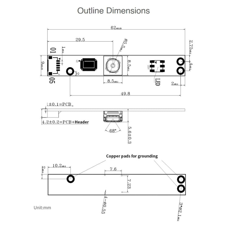 Waveshare OV5640 AF 5MP USB Camera Module, Support 1080P Video Recording, AF