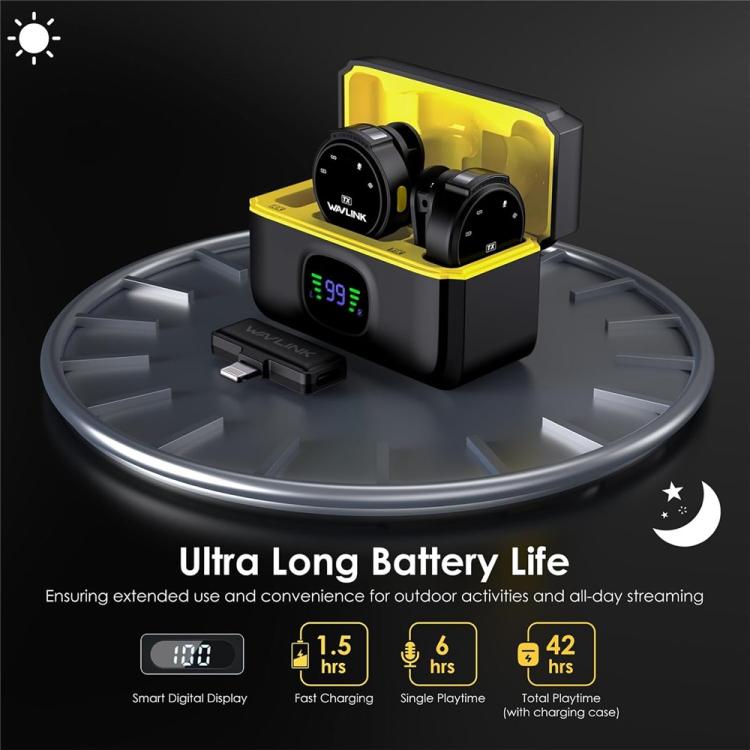 5. Long Battery Life: With the smart charging case, it can provide up to 42 hours of extended use, and each independent microphone can last up to 6 hours of use.