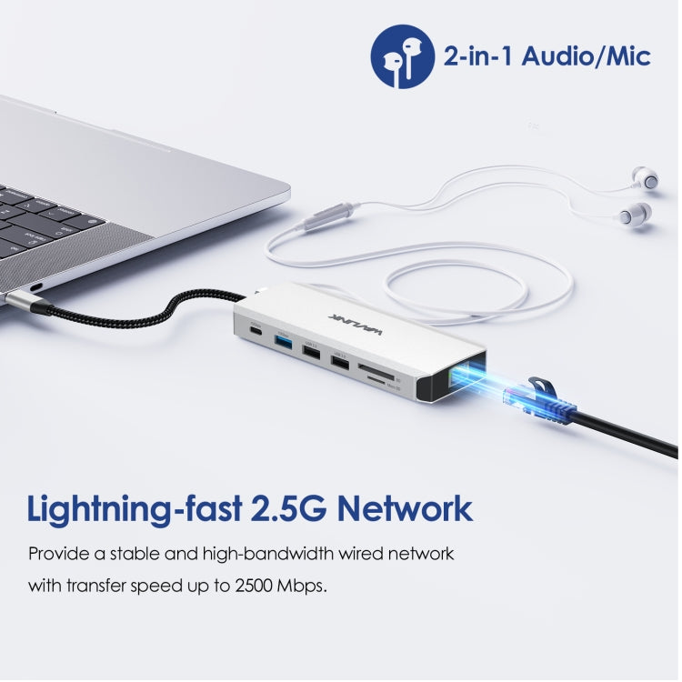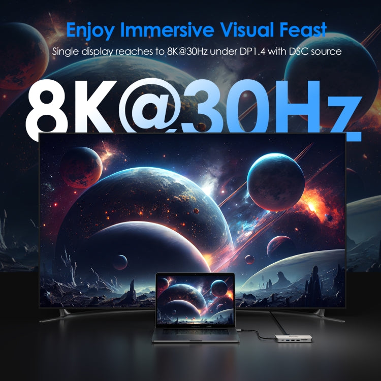 1. Multi-ports Expansion: Equipped with 1 x HD (4K@60Hz under DP1.4) + 2 x DP ports (8K@30Hz/4K@144Hz with DSC) + 85W USB-C PD port + 2 x 10Gbps USB 3.1 + 2 x USB 2.0, 1 x 2.5Gbps RJ45 port + 2 card reader slots for SD / TF card (104MB/s) + 3.5mm audio port, providing huge peripheral connectivity, upgrading your workstation with a single USB-C port, greatly improving work efficiency