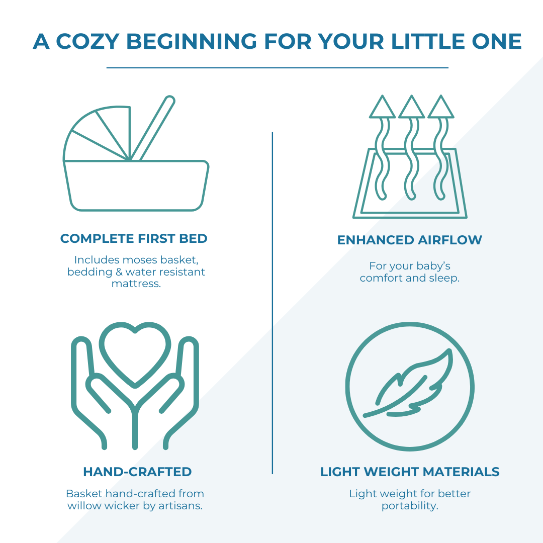 The Wicker Pod Baby Deluxe Moses Basket is the perfect blend of style and functionality, designed to provide a snug and secure sleep space for your little one. With its elegant hand-woven wicker construction, this moses basket not only looks beautiful but also promises durability and comfort. Your baby deserves the best, and this basket creates a warm and inviting environment, making it ideal for naptime and overnight sleep.