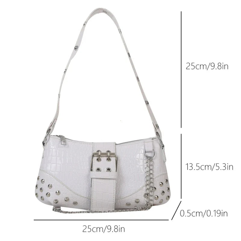 Women Fashion Shoulder Bag Gothic Ladies Bag Cool Style Trendy Rock Girls Handbag Y2K Rivet Chain for Travel Vacation Daily