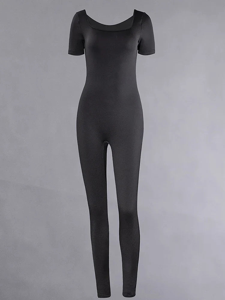 Women's Rompers Short Sleeve Solid Skinny Bodycon Jumpsuits Fashion Sports Fitness Casual Activity Streetwear Overalls