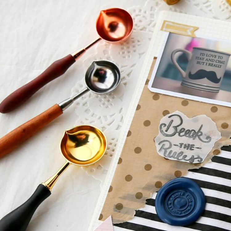 Wooden Handle Brass Seal Wax Spoon Tool Melting Sealing Wax Hand Account Stainless Steel Fire Paint Spoon, Straight Round Wooden Spoon