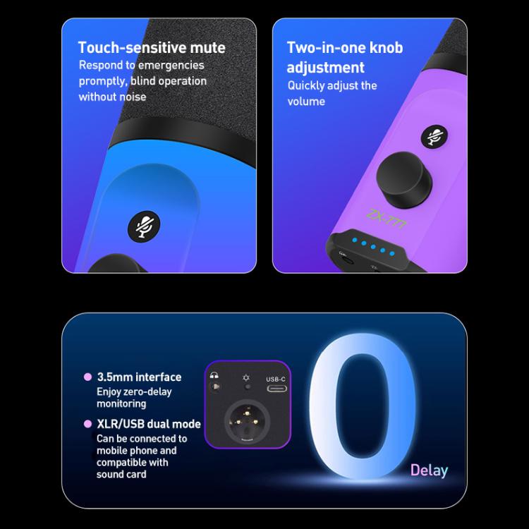 XTUGA ZX-777 XLR / USB-C Dynamic Microphone RGB Light Noise Reduction for Live